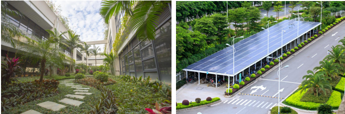 在绿色低碳技术应用方面,一是首次在我国亚热带地区大型仓储建筑中成功运用了蒸发冷却降温设施。采用水帘蒸发冷却新风设备和风压降温循环系统,实现了建筑降温节能率达80%。二是全面安装光伏太阳能发电系统。园区照明均使用无极灯、LED灯等节能灯,均配有自动感应节能控制系统。三是建设了能耗云平台,实现能源的智慧监测和精细化管理,对能源消费情况动态监测。四是建设了无负压节能集中供水系统、水循环处理系统和雨水收集系统。