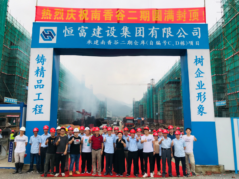 7月12日下午,伴随着最后一方屋顶浇注上混凝土,南香谷二期工程正式封顶。仪式现场热闹非凡——鞭炮齐鸣,网站名称官金仙董事长携公司项目管理人员、恒富公司管理人员和全体施工队、监理公司负责人员等参加了封顶仪式。